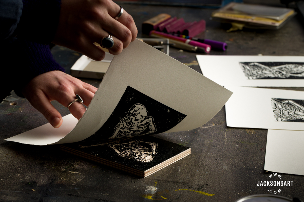 Ideas: Don’t wash a woodcut plate in between prints with water, because the moisture will take some time to dry from the wooden, and would intervene with any subsequent prints. That is completely different from lino aid printing, the place you may dry the plastic off shortly earlier than printing once more.