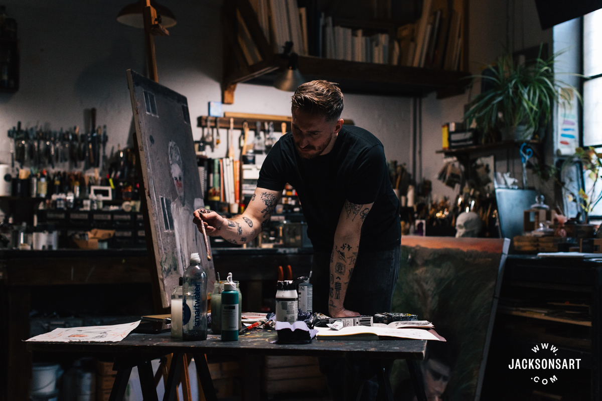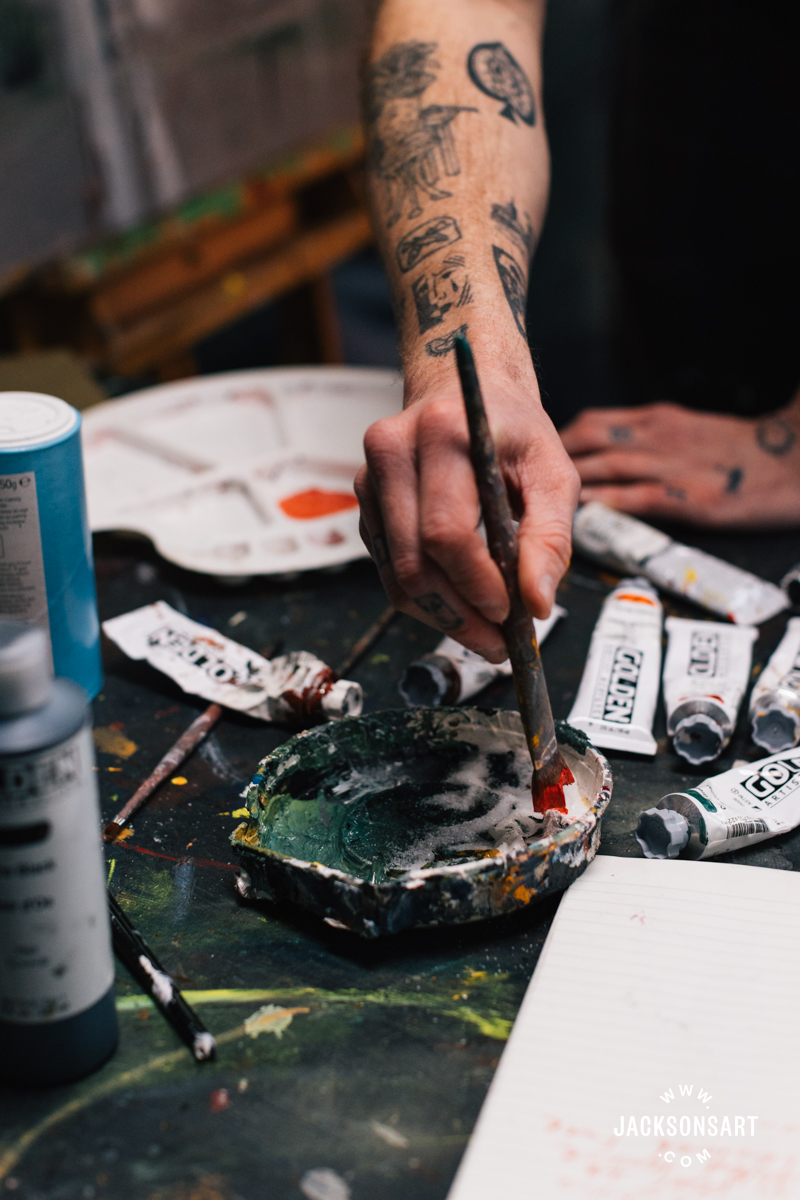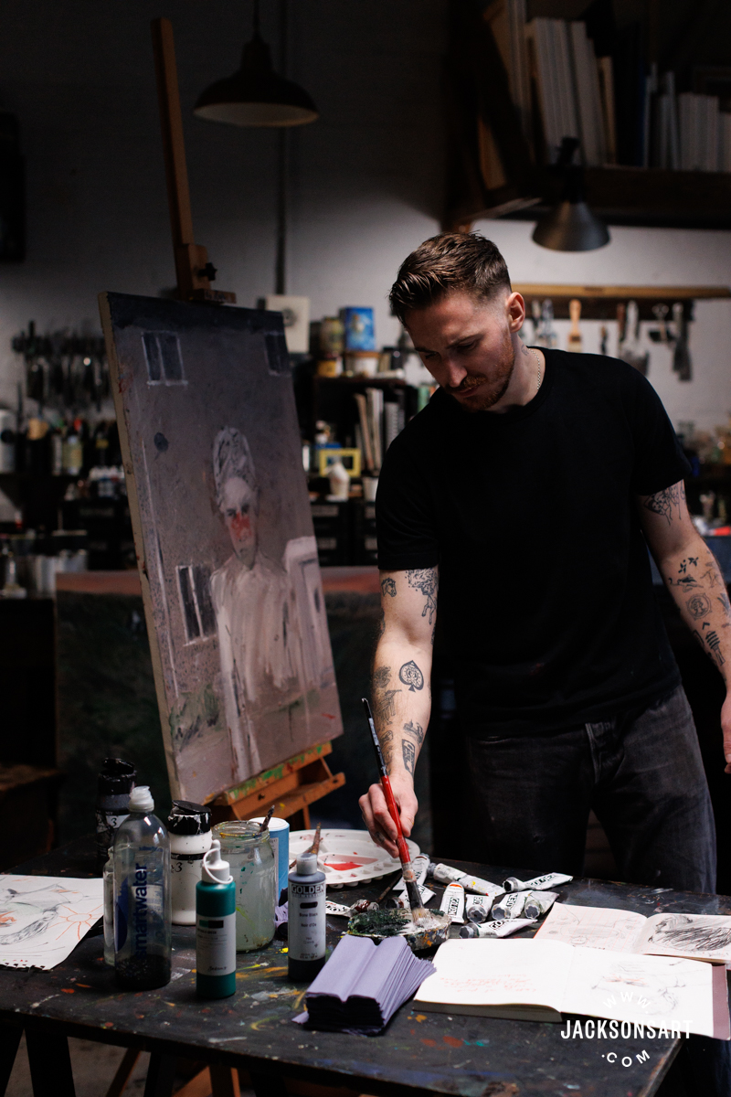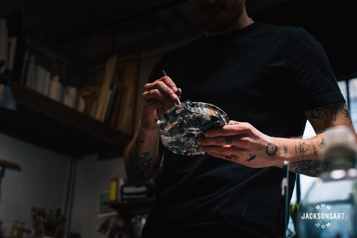 My identify is Billy Bagilhole. I’m a painter, filmmaker, and tattoo artist from North Wales, and I’m right here within the Jackson’s Studio to speak about my apply.