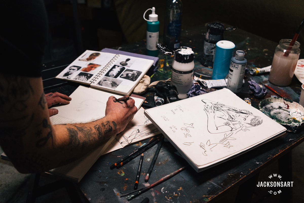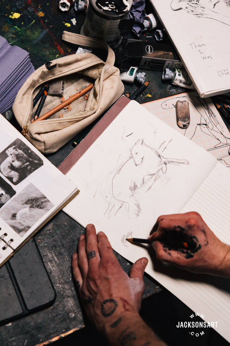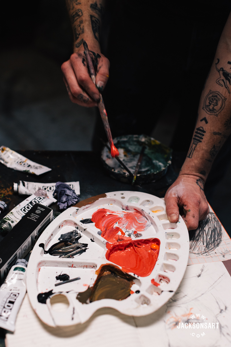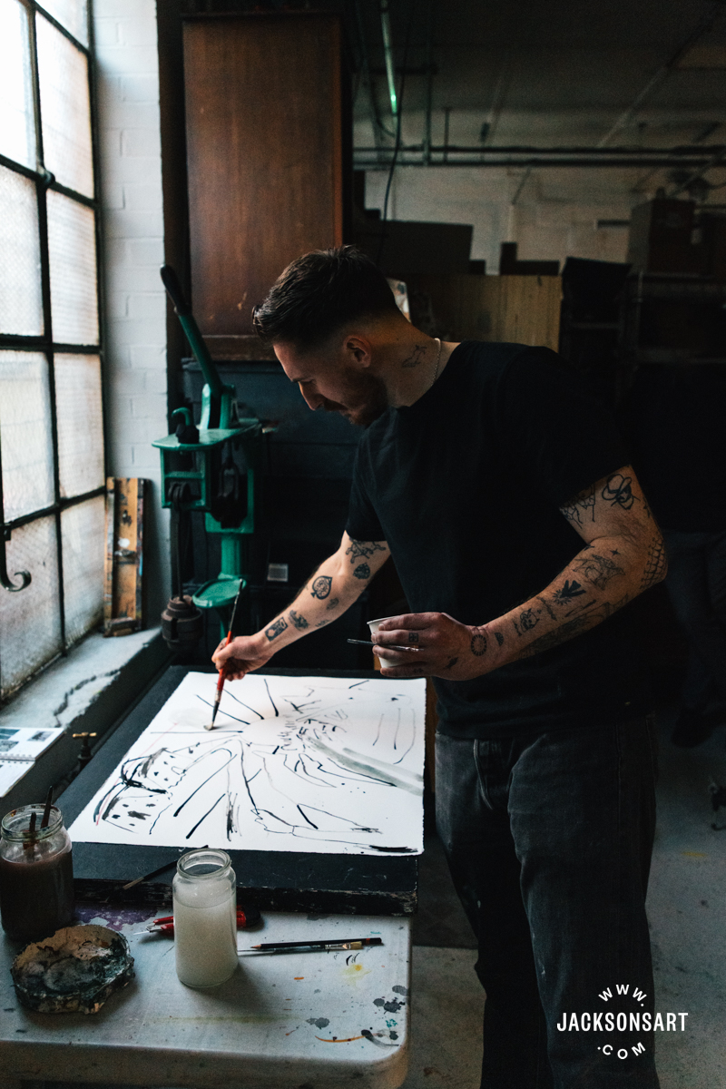 My identify is Billy Bagilhole. I’m a painter, filmmaker, and tattoo artist from North Wales, and I’m right here within the Jackson’s Studio to speak about my apply.
