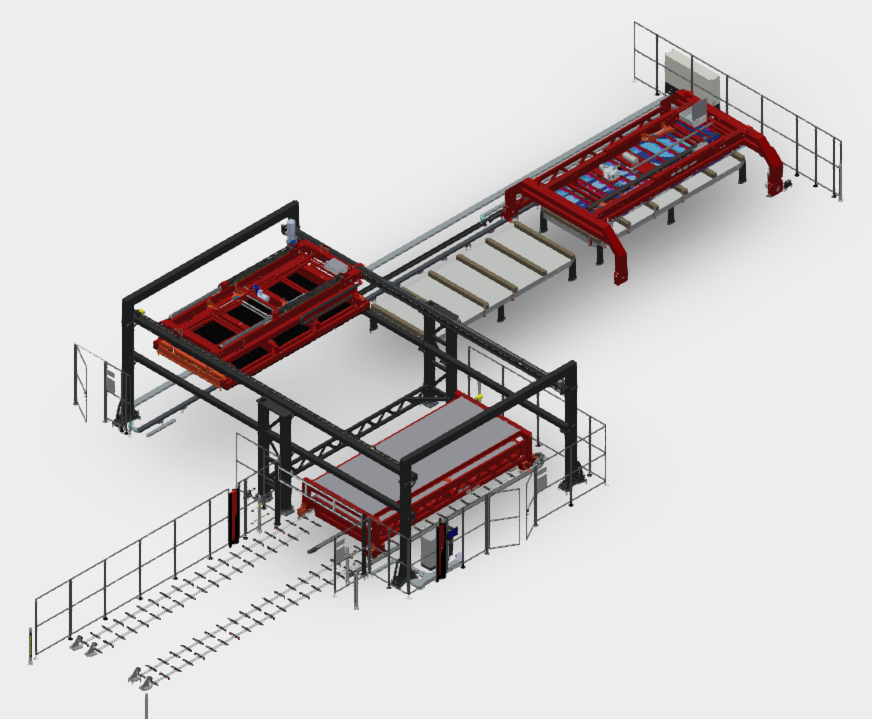 A fork unit then travels perpendicular to the desk to choose up the completed sheet of components and drop it off on one among two carts. That cart then strikes outdoors the system to a spot the place operators can take away the completed components from the skeleton one sheet at a time or look forward to the stack of completed sheets to achieve a predetermined restrict earlier than they take away the components. The latter choice permits the system to run lights-out when and if CO Constructing wishes it.