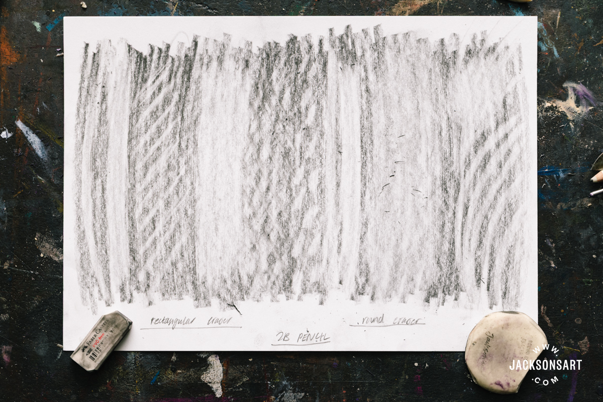 As you’re employed with an eraser, you need to be conscious of constructing use of every of its edges. By turning an eraser in your hand as you’re employed, you may make quite a lot of marks from the identical implement. Within the following sheet I demonstrated the varied marks made by a spherical and rectangular eraser, from skinny strains to broad strokes.