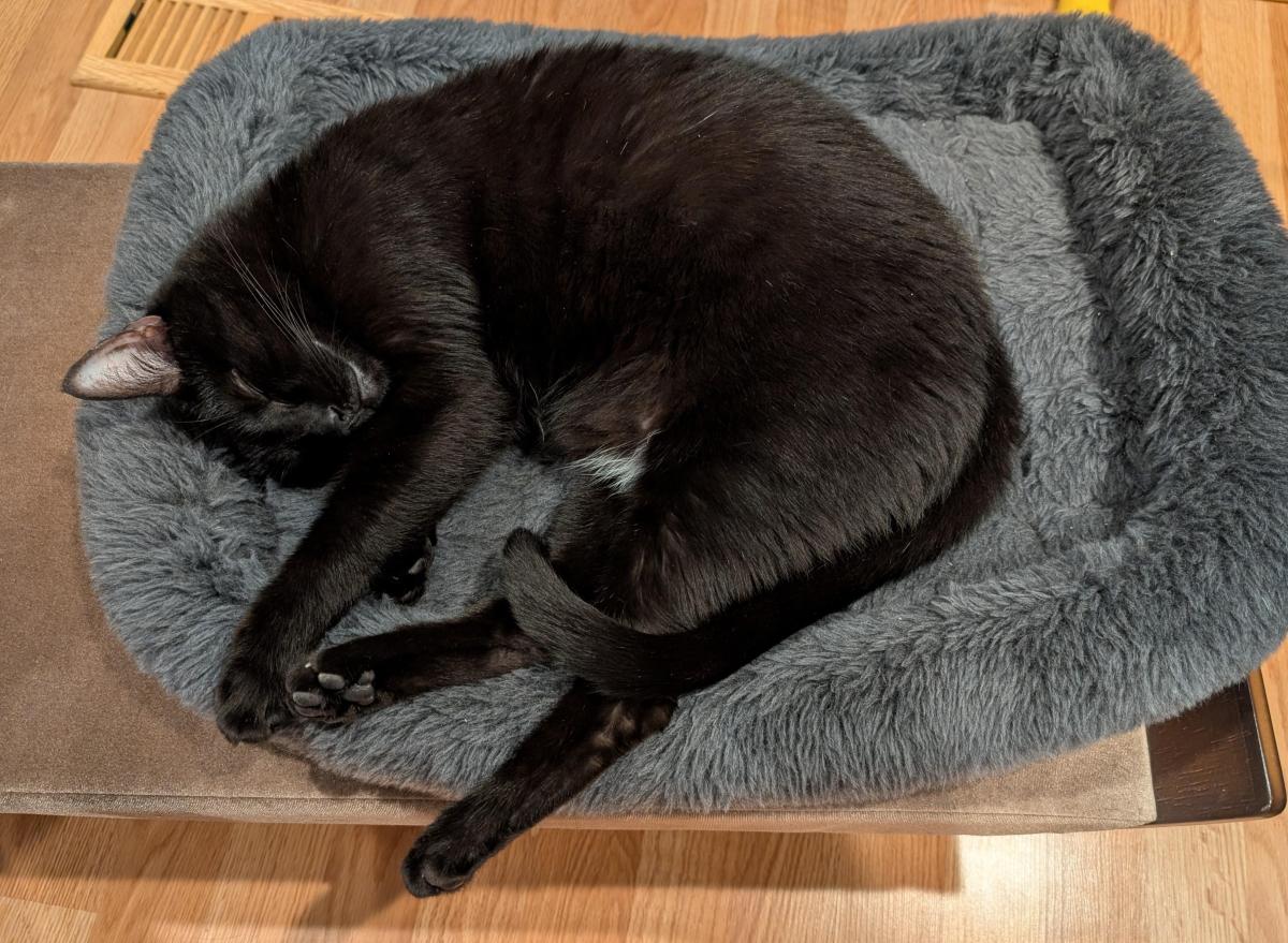 Percy, having a nap on a cat mattress on a cat mattress. For no matter purpose, he’ll ignore each of those cat beds individually, however when they’re on high of train different, he likes them.