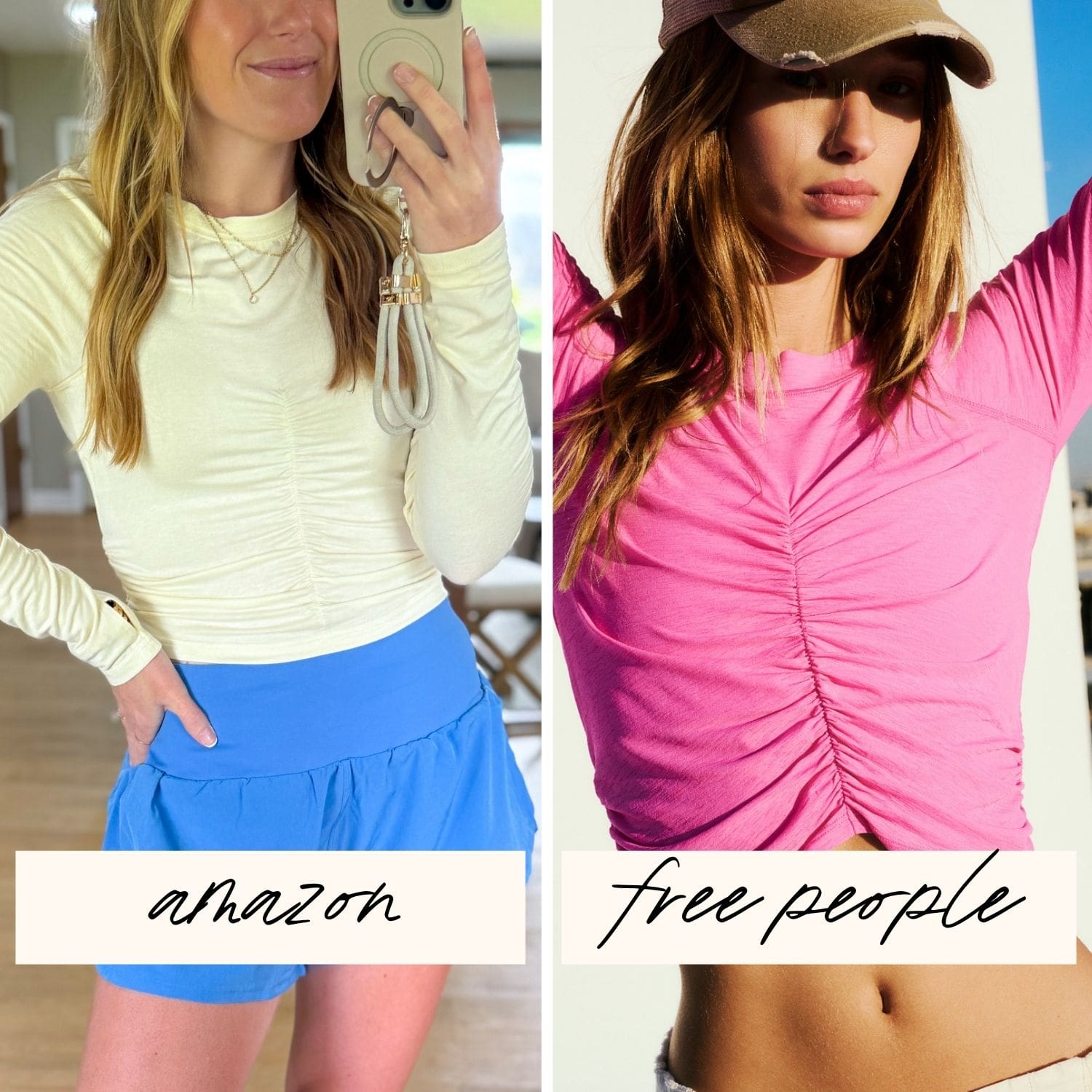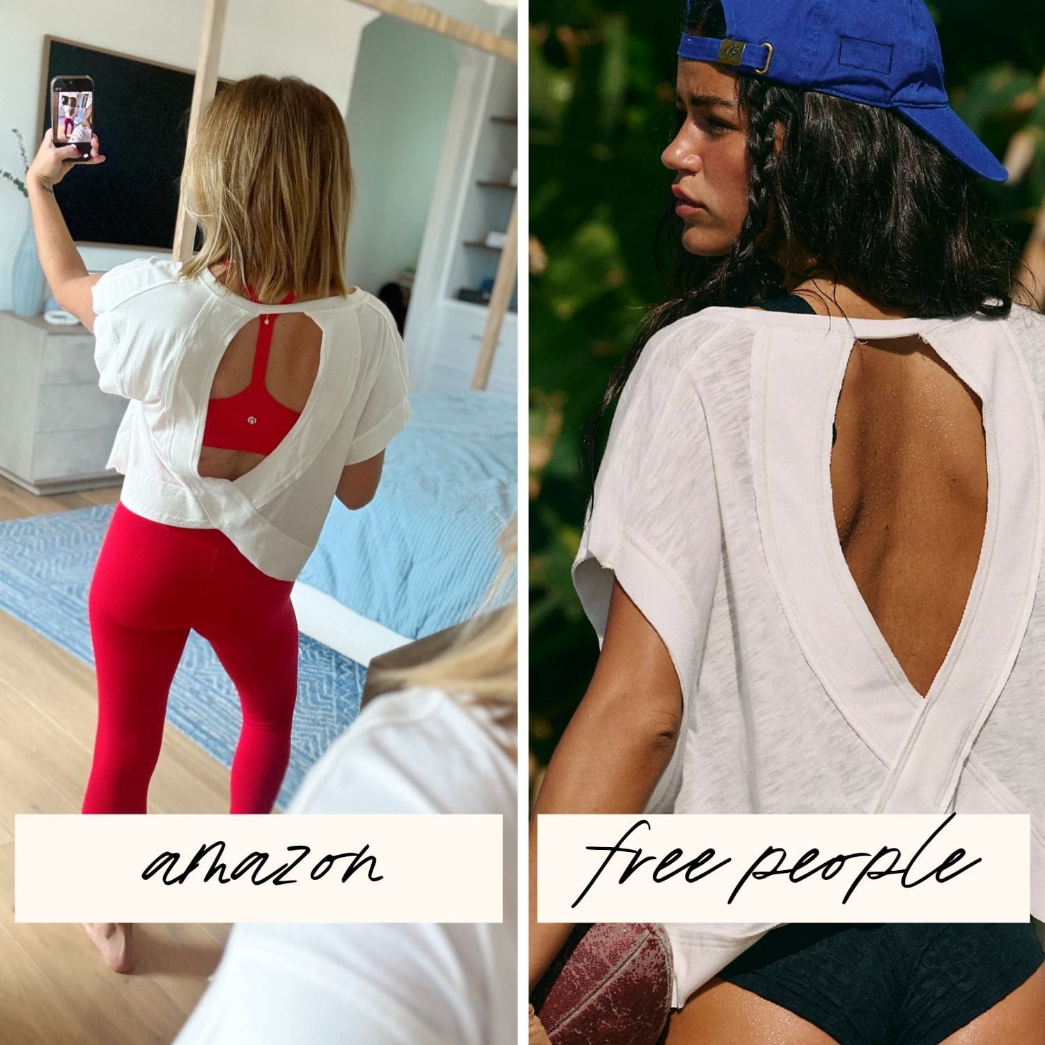Amazon Open Again High [true to size, wearing in small] // Sports activities Bra [true to size, wearing in medium] // Leggings [true to size, wearing in small] // Free Individuals My Time Tee