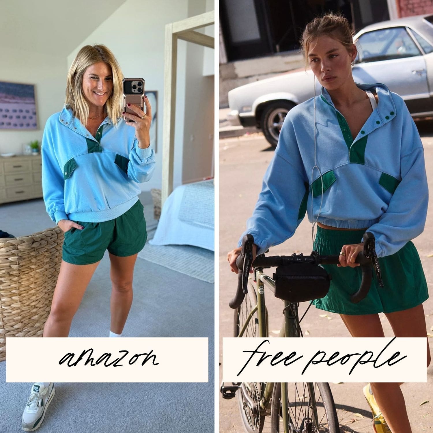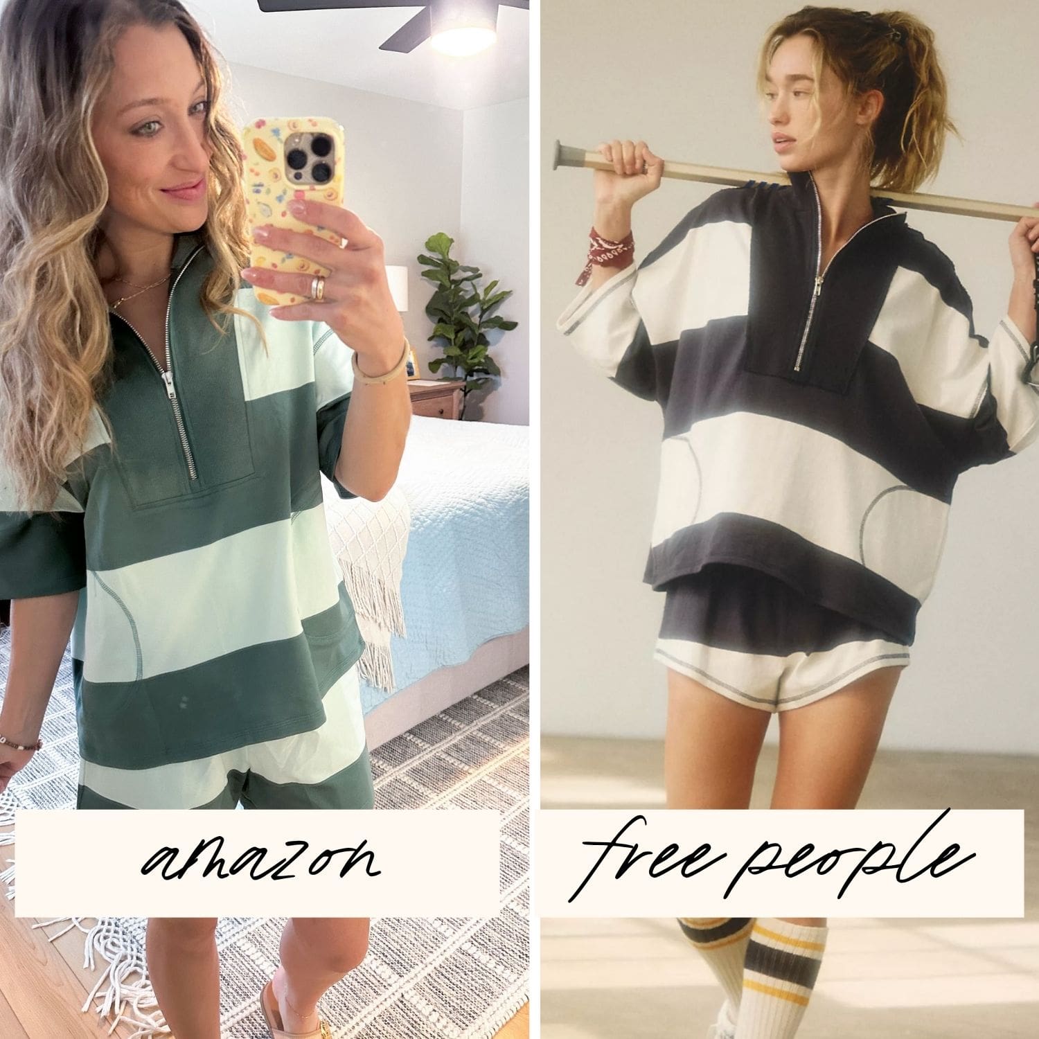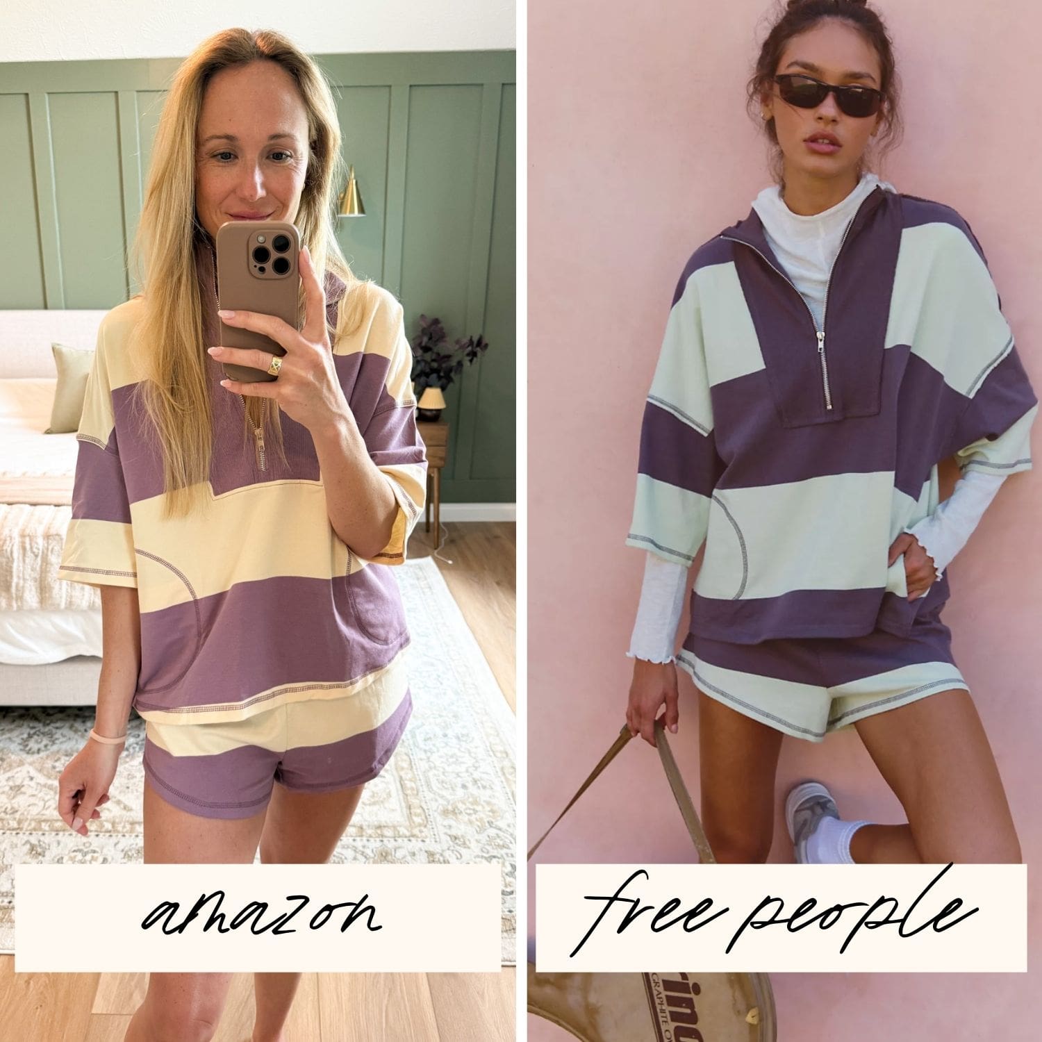 Amazon High & Shorts Set [size down if in between, wearing XS] // Free Individuals Retro Rugby Half Zip High & Shorts Set