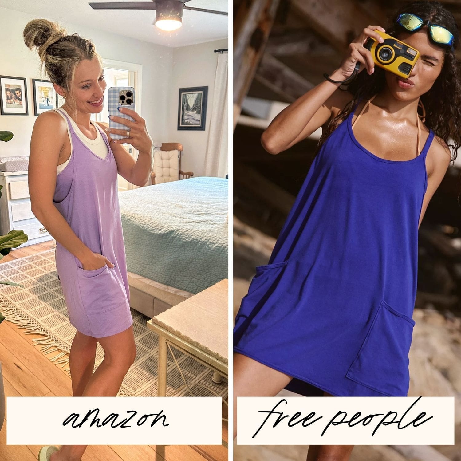 Amazon Gown [true to size, wearing in small] // Comparable Tank // Free Individuals Scorching Shot Mini Gown