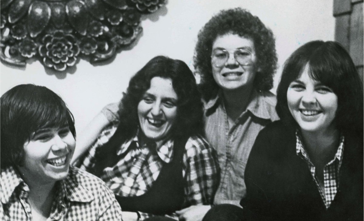 {Photograph} of The Brunswick 4 (1974), courtesy of The ArQuives: Canada’s LGBTQ2+ Archives. From left: Adrienne Rosen, Pat Murphy, Sue Wells, and Lamar Van Dyke. Copyright Aaron Devor.