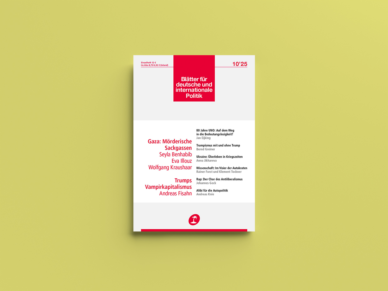 In Blätter, Seyla Benhabib writes that Israel’s struggle on Hamas displays three vital shifts in worldwide relations: first, protectionism, imperialism and expansionism changing globalisation, significantly within the invasion – or threats of invasion – by Russia, america, China and Israel. That is typically justified in methods harking back to the Lebensraum ideology of the early 20th century, with its ‘racialized and exclusionary imaginative and prescient of nationwide identification’.