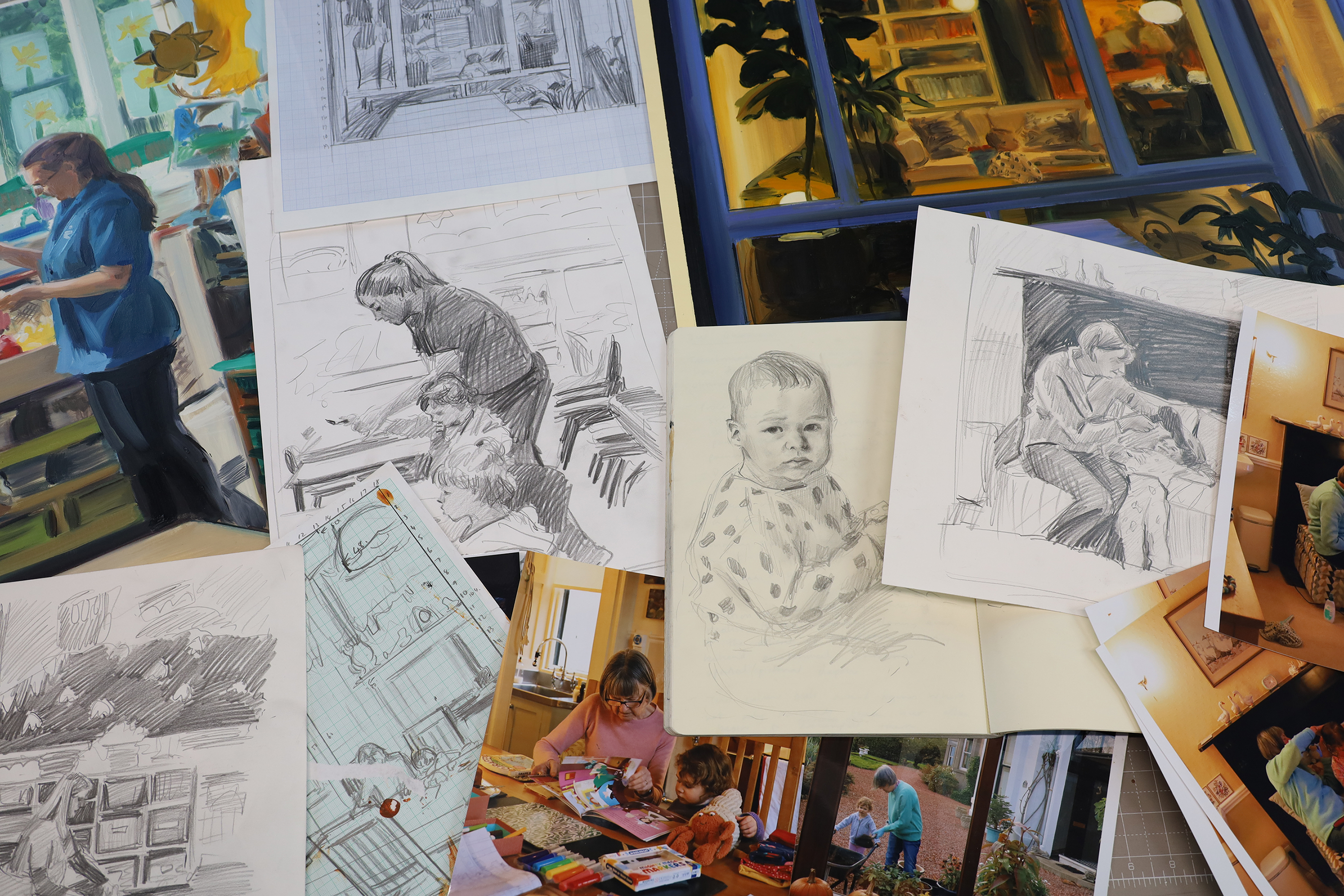 Caroline: I’ve all the time been , as an artist, in ladies’s expertise. After which in round 2016, this turned extra targeted on serious about ladies’s working lives, and specifically, labour that may be much less seen to us. And that was actually prompted by trying round me within the metropolis an terrible lot extra. It began with a sequence of work of girls working in nail bars, after which it has developed by way of a lot of completely different topics, typically serious about ladies’s work. In the previous couple of years, serious about ladies’s work in relation to childcare and motherhood. In order I transfer by way of my very own life, and these completely different experiences have an effect on me, it appears to open up new topics for me inside this theme of girls’s work.