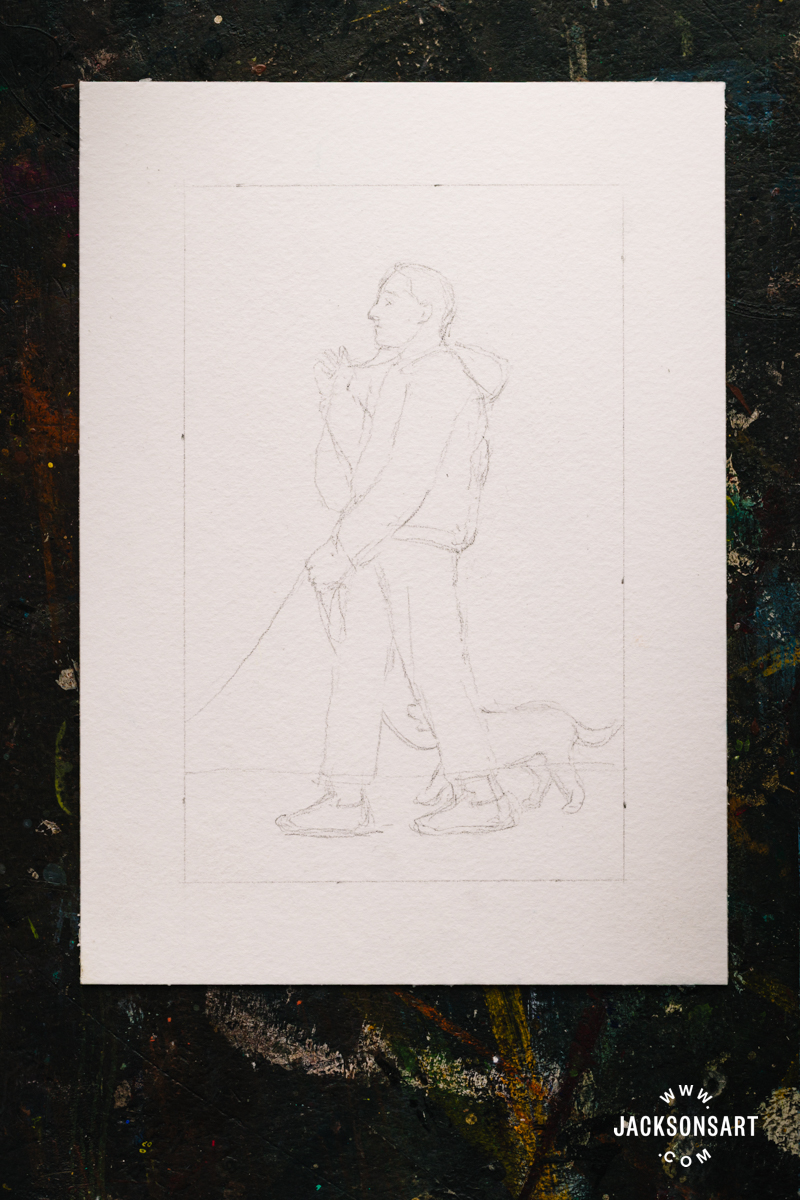 To start, I measured a good border to go round my picture, and drew it out evenly in 2H pencil utilizing a ruler. Then I evenly sketched my determine, ensuring to seize the face in profile.
