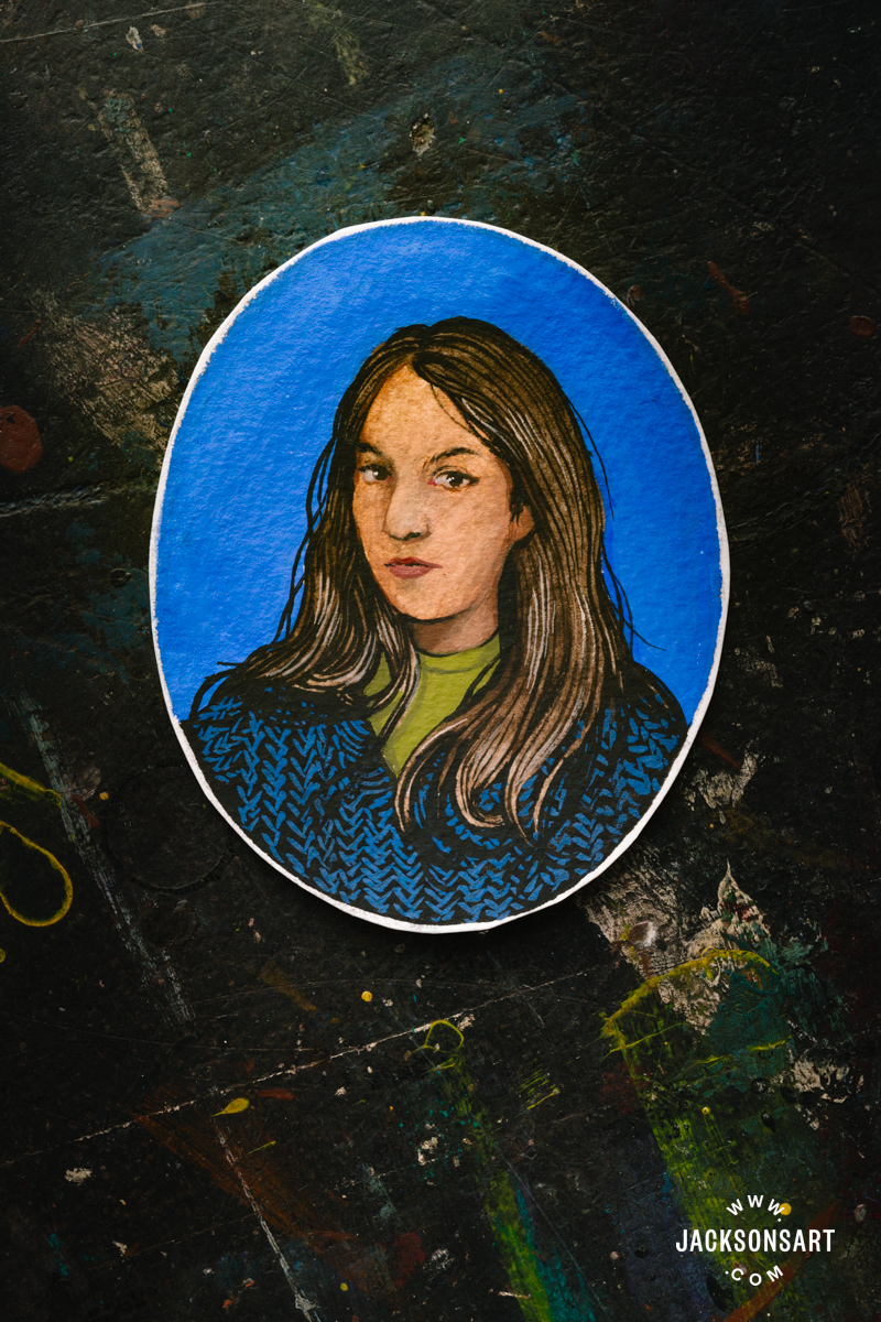 I took care to dam within the broad colors and tones earlier than choosing out refined particulars like freckles, eyelashes, and a spotlight within the eye. I accomplished the work by sealing it with a layer of satin acrylic varnish.