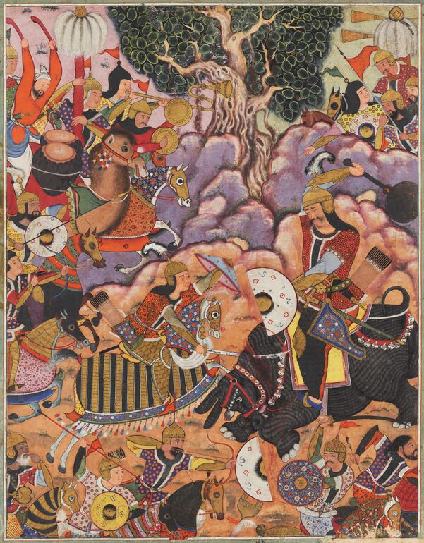 The primary main work was the creation of the Hamzanama, or the guide Hamza. This charted the heroic story of Hamza and his followers in opposition to supernatural creatures and his enemies. Lower than 200 work have survived to this present day, from the 12-14 authentic volumes, every made with 100 work. The next picture is without doubt one of the surviving work of a churning battlefield. The effervescent floor cleverly conveys the thunder of hooves and the chaos that ensues.