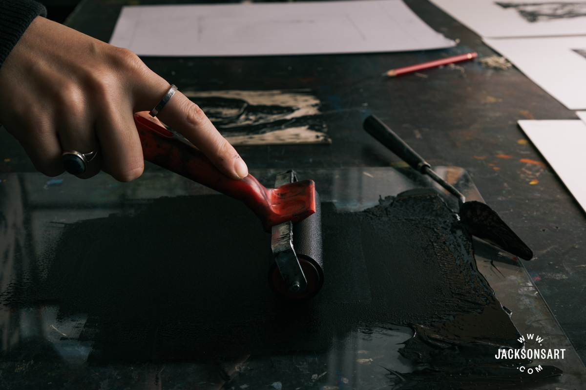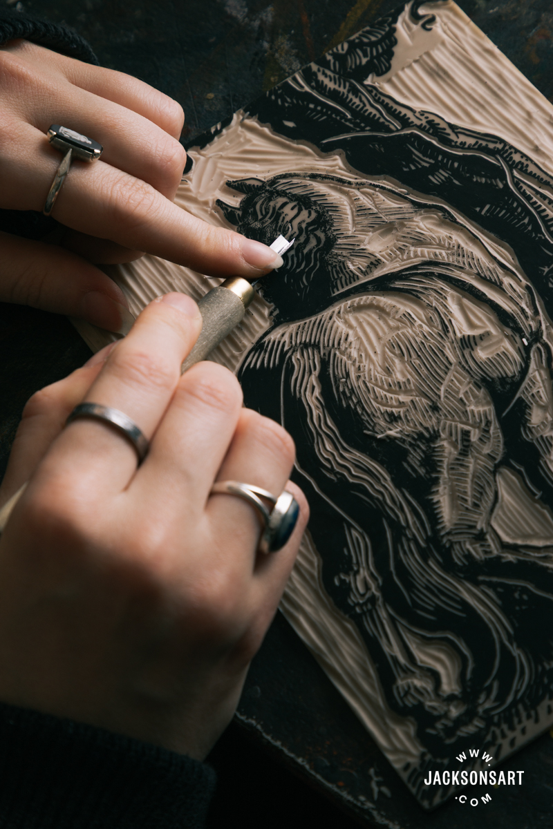 As soon as I completed reducing, I inked my block utilizing Speedball Skilled Aid Ink in Supergraphic Black with an Essdee Curler, to print on Arnhem 1618 Paper utilizing a Slama Hand Printing Press.