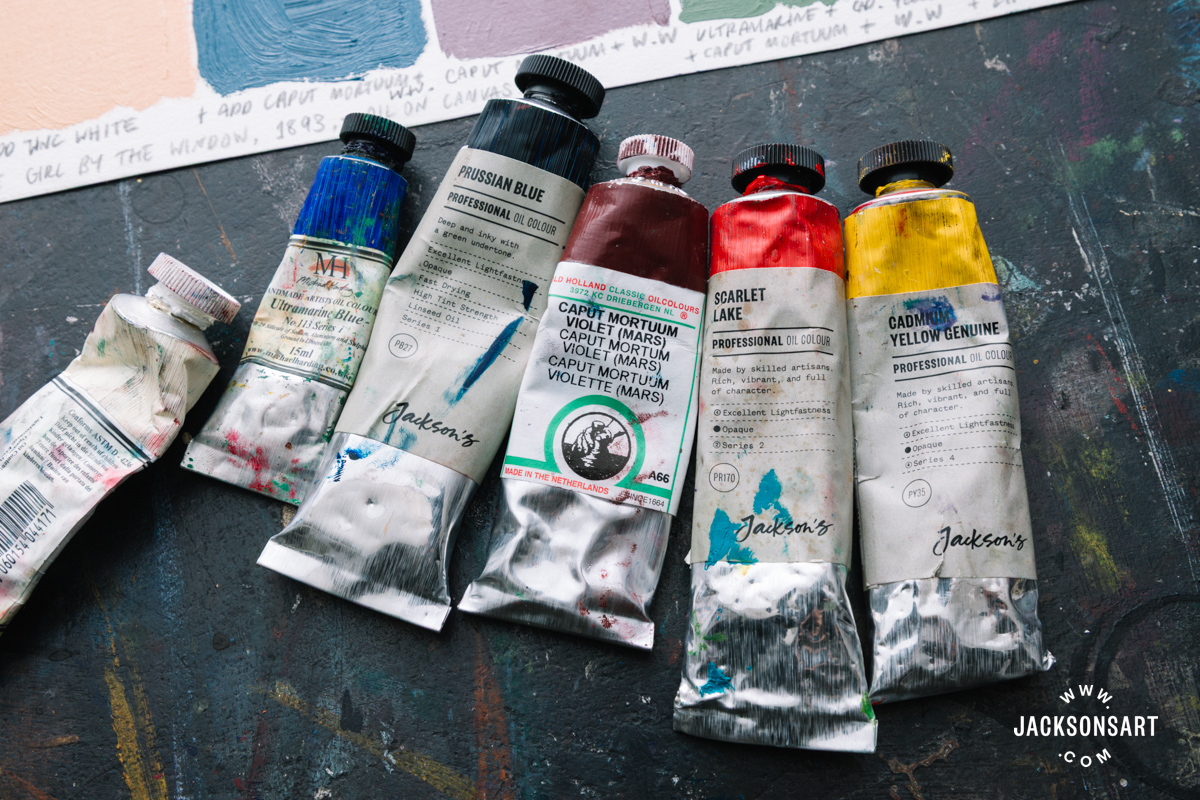 For my recreation I used to be capable of combine the moonlit inside with a restricted palette of colors: Zinc White, Ultramarine, Prussian Blue, Caput Mortuum, Cadmium Yellow and Scarlet Lake. The oranges on my mixing sheet consult with the little flashes of color on the lady’s neck and round her arm, giving her a flushed glow in distinction along with her blue environment. I particularly loved selecting out and mixing the chromatic greys of this portray, with out utilizing any black.