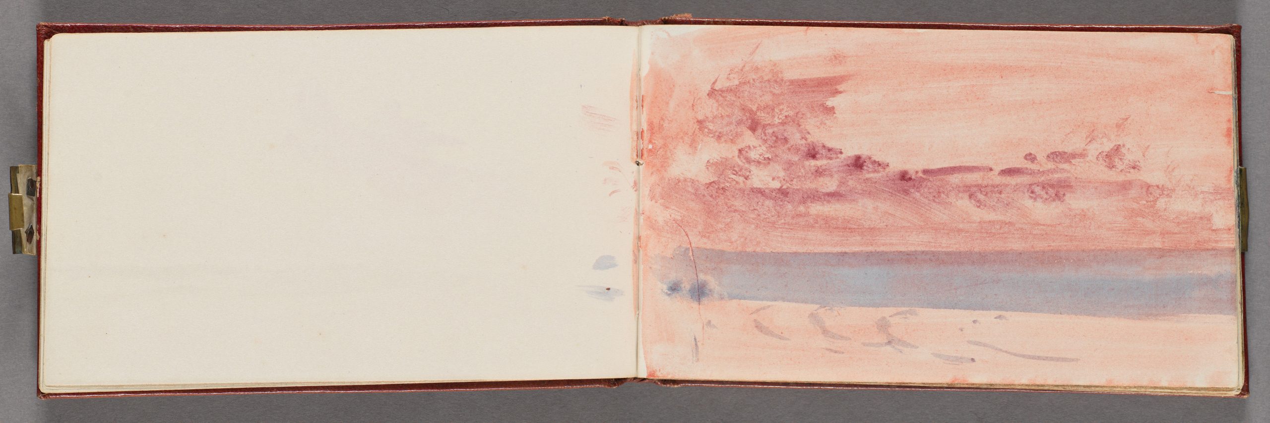 Sketchbook certain in crimson calf with marbled finish papers, watercolour on wove paper