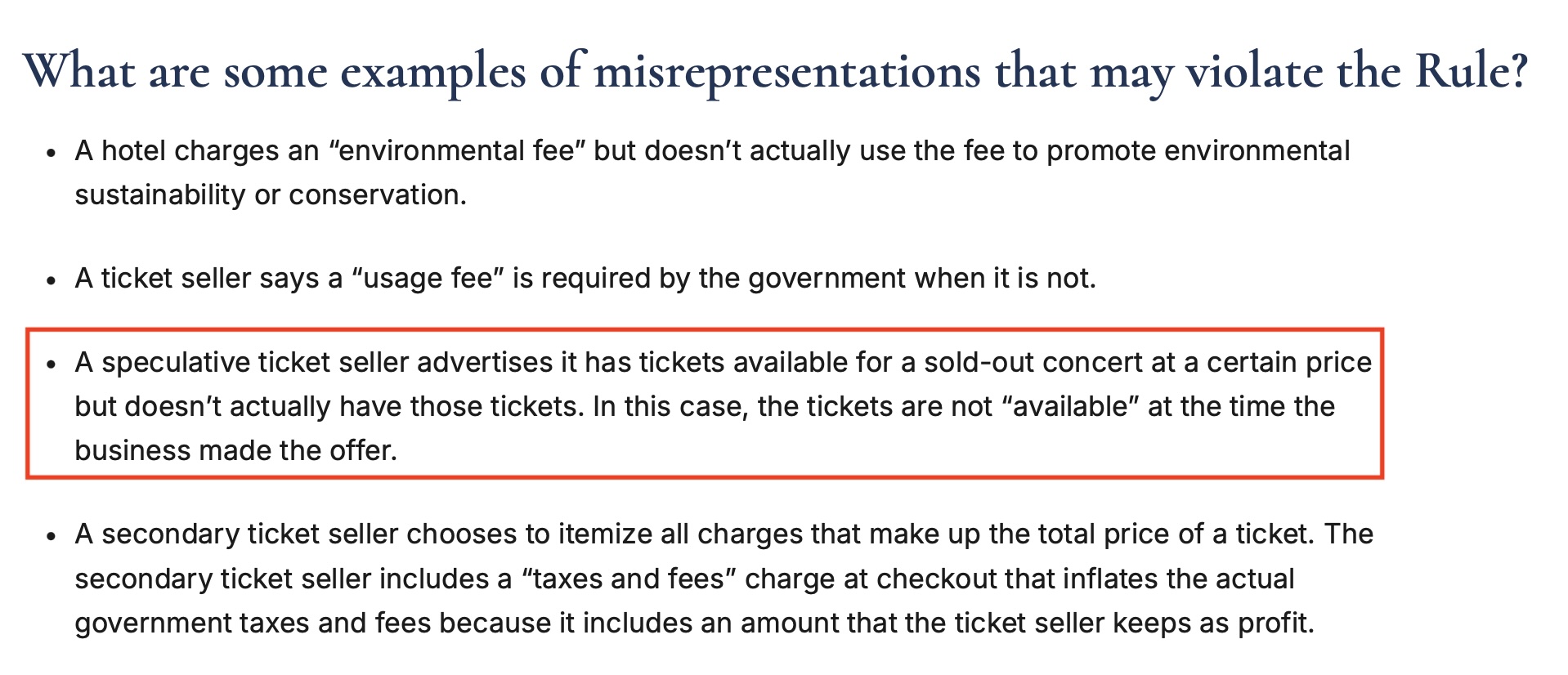 Since writing that earlier publish, one other piece of the authorized puzzle has grow to be clearer. The Federal Commerce Fee’s current rulemaking on unfair or misleading charges incorporates a straightforward to identify idea that goes on to the guts of speculative ticketing.