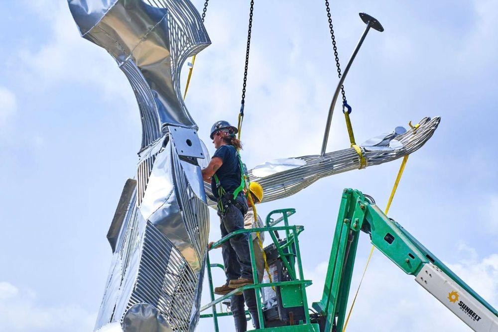 Though the sculpture was complicated, Howard-Potter stated it took simply 9 months from the contract signing to set up in Canton. As an example, he initially estimated fabrication to take about 4 months, however it was completed in about half that point.