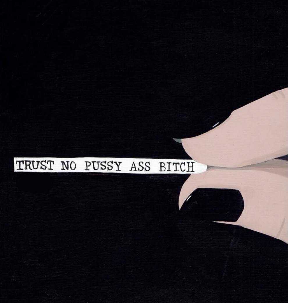 His works are minimalist, witty acrylics on 8×10″ wooden panels — flat pop-art colours, easy icons (housewives, canine, burgers, cocktails, philosophers), and painted by hand sarcastic captions like “Fuck this shit” subsequent to a joint-smoking girl or Freud pondering existential dread.