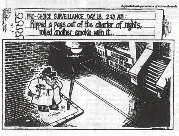 [13] Chris Rose and Sarah Cox, “Investigation of pro-choice group heavy-handed, police say,” Vancouver Solar, July 28, 1988, A2.