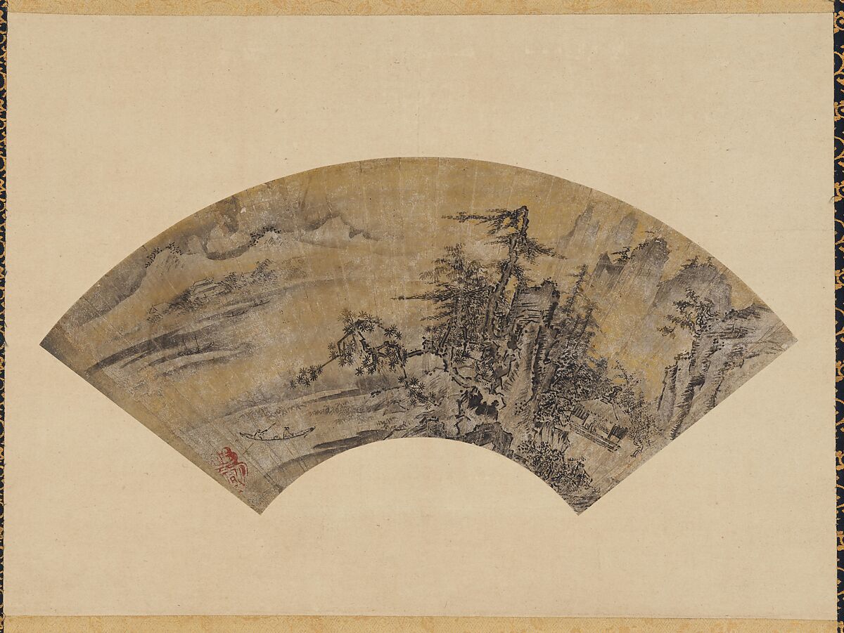 Toki TobunFan mounted as a dangling scroll; ink, gold wash, and mica on paper, 127 x 66 cm | 50 x 26 in
