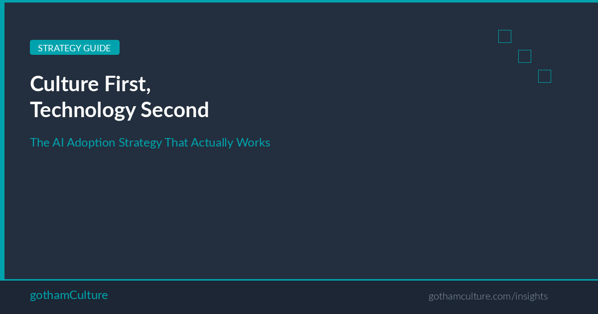 Tradition-first. Assess and strengthen your tradition earlier than choosing and deploying AI. That is the strategy that produces dramatically completely different outcomes — as a result of by the point you introduce the expertise, your group is prepared for it.
